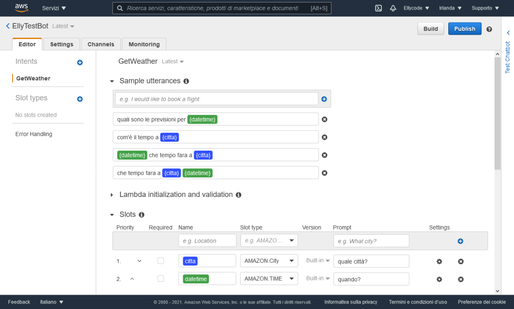 Like the other services, the bot can be used with both text and voice. It is also possible to easily integrate the Kendra service, to build a knowledge base starting from unstructured documents and FAQs.