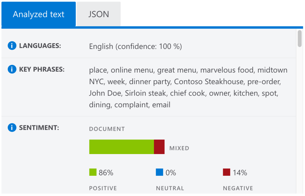 Major Cloud providers offer ready-made services for natural language processing as we saw in Salvatore’s article. So these services can identify the language of the text, extract the key phrases, places, people, brands or events, and understand whether the text has a positive or negative connotation, all while giving us near-immediate results. They all offer the ability to create a custom template for a set domain by defining specific custom entities.