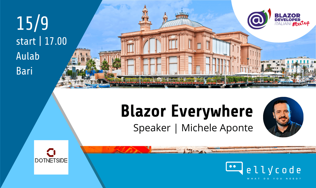 La partecipazione è come sempre gratuita, con registrazione obbligatoria in calce alla pagina della community https://blazordev.it/eventi/blazor-developer-italiani-meetup-settembre-2022/